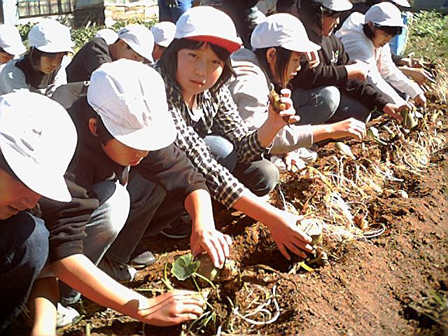 春に植えたさといもがたくさんなったので、今日収穫しました。このさといもはわかあゆ祭の時に芋煮を作ってみんなで食べます。今年もたくさん芋が収穫できました。わかあゆ祭がとても楽しみです。