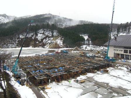 コンクリート打設のため、ポンプ車とミキサー車のペアが登場です。(*^_^*)