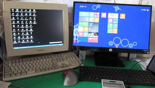 XPと並べて撮影しました。XPは、データを8・1に移行するまで、もう少し稼働してもらいます。8・1もなかなか使いやすく、よく騒いでいるような違和感はないです。XPで使っていた(という事はだいぶ古いバージョンの)ソフトが、問題なく動きます。無駄な出費がなくなってよかったよかった!立ち上げやシャットダウンもはやいですねぇ。XPと比較するとあっという間に立ち上がります。感動!シャットダウンの場所が分かりづらいというのは、そんな事はないです。又、ショートカットなら