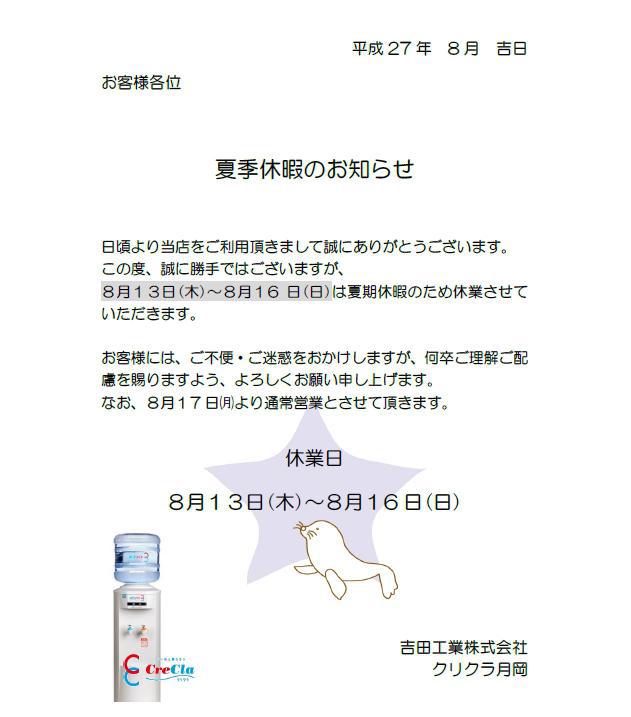 ●夏季休業のお知らせ
