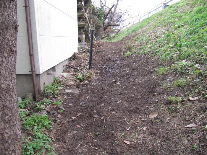 去年の分も堆積していた枯葉が、下の状況でしたが、全部スッキリと片付けました。茶ゴミ袋6袋でした。