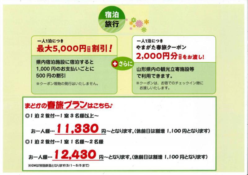 ●まどかのやまがた春旅料金プラン