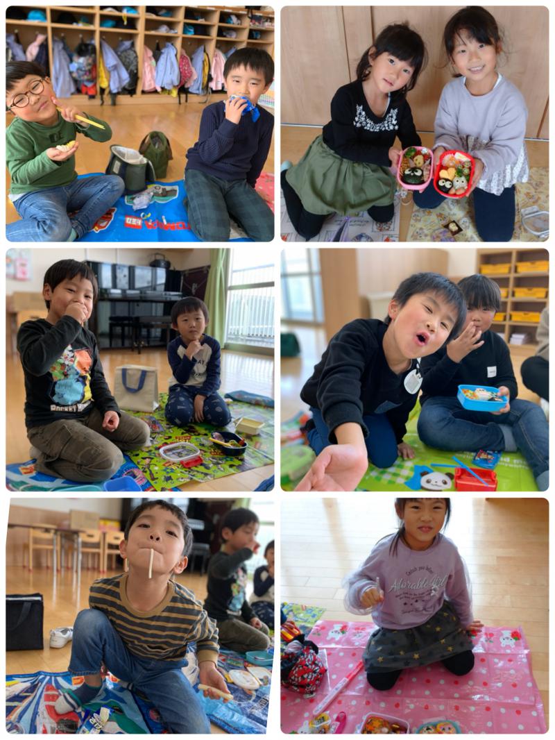 お弁当の時間になると、お友達と見せ合いっこタイムが