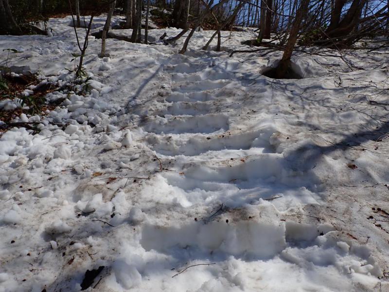 急斜面で固い雪があり滑って危険です。スタッフで丁寧な階段作ります。とても歩き易く楽に登れました。感謝です。