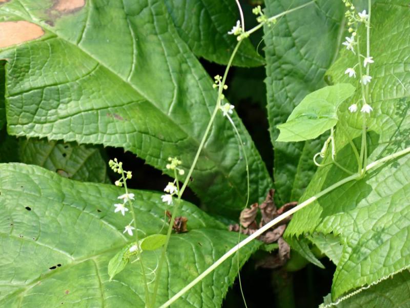 2023.8.17 雄花が咲きました。ミヤマニガウリは雄性両全性異株という変わった生態系を持っています。間もなく両性花も咲くでしょう。