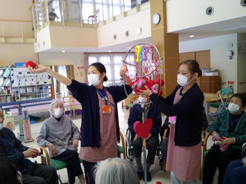 2/14はバレンタインデーでしたね。あゆみ通所ではまり入れを行いました。ただのまり入れではなく、バレンタインにちなんで、ハート形のまりを使用しましたよ。ハート形も様々用意し、それぞれ点数を変えて行いました。中には、マイナス点の物もあり、最終集計まで勝敗が分からないということで、大変盛り上がりました。 ※来月は、春彼岸ショッピングを11日〜13日の三日間予定しています。