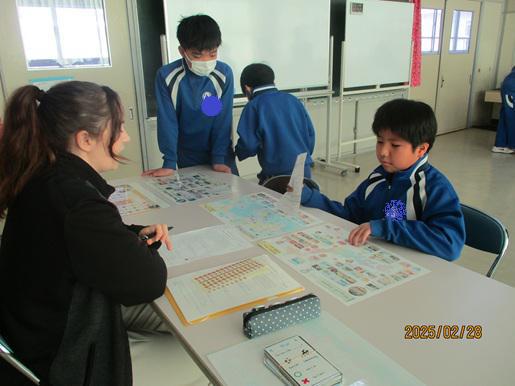 先生も「へ〜!」と驚くような内容の会話もする5年生。 周りの人たちも、しっかり聴いています。 毎回の英語の授業が、この日につながっています。 中学校まであと1年、ますます自分を磨いていきましょう。