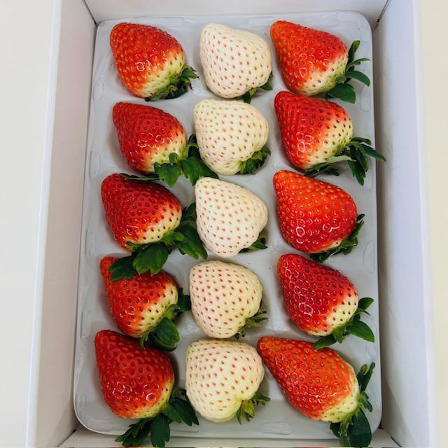 期間限定のセットです。今の時期が、「いちご姫」も「天使のいちご」も美味しくなっています。どうぞ、紅白の色彩と食べ比べをお楽しみください。