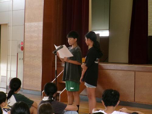 7月7日(月)、運営委員会主催の七夕集会が行われました。七夕に関するクイズや、願いが叶うようにと「夢の職業しりとり」など、みんなで楽しめる活動を考えてくれた運営委員会のみなさんと、それをバックアップした6年生の皆さんに、大きな拍手と感謝の言葉を伝えました。夢を叶えるために、今からどんなことができるのか、主体的に考えて行動できる子供たちの育成に努めたいと思います。全校生83名の夢が叶いますように・・・。 子供たちの短冊は、職員室前の廊下に掲示してありますので、学校においでの際はぜひご覧ください。
