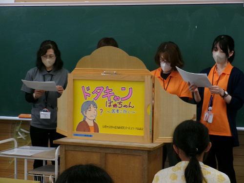 7月11日(金)、認知症サポーター養成講座が行われました。町の健康づくり推進員及び健康福祉課の方々をお迎えし、毎年5年生を対象に行われているものです。 これは、認知症についての理解を深めることを目的に実施しています。紙芝居を使って、認知症の方に対する適切な対応方法等を教えていただいた子供たちは、認知症サポーターの証としてオレンジリングをいただきました。子供たちが、多様性あふれる共生社会の一員としての一歩を踏み出すきっかけとなる、有意義な時間となりました。