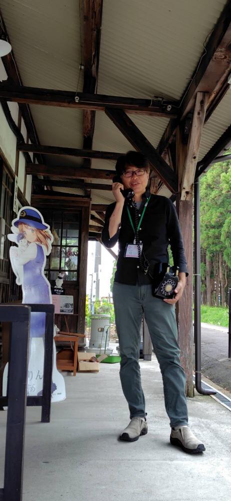 7月6日 2019年以来、6年振りに訪問、古き良き木造駅舎が前回同様大切に保存されていて感無量。願わくば永遠に保存されてほしいなぁ。 7月6日 約2年ぶりの訪問。どこの路線でも古い駅舎、特に木造駅舎をいつまでも残して欲しい。施設維持に尽力されているすべての皆様に感謝(福島県 水野) 追伸:米屋さんは今いずこ? 【おらだの会】地域おこし協力隊の米屋さんは、週一ペースで羽前成田駅においでになり、駅のそうじや電話での応対に忙しく勤務されております。なお米屋さんは以前から黒電話の携帯がお好きなようです(笑)。写真はNanaさん提供。 → 米屋先生の熱血授業 その2:おらだの会