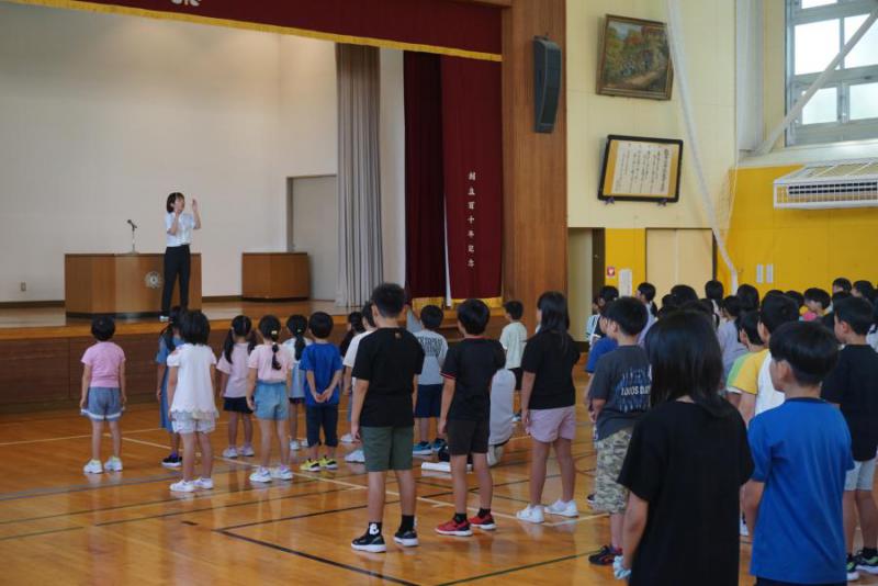 82日間の2学期がスタートしました。久しぶりに会った子どもたちでしたが、みんなとても元気でした。始業式では、どの学年も落ち着いた態度で臨むことができました。校長の話も、児童代表の4年男児の言葉もしっかりと聞くことができました。児童代表からは、2学期がんばることとして3つのことがありました。1つめは漢字を丁寧に書くこと、2つめは運動、たくさん走って体力をつけること、そして3つめは毎日元気に登校すること。目標をもって楽しい2学期にしたいと、はきはきと発表することができました。感染症が少し流行っているような感じもありますが、まずは毎日、元気に登校できることを願います。保護者の皆様、地域の皆様、引き続きよろしくお願いいたします。ところで、夏休み期間中に職員の公務パソコンが新しくなりました。ありがたいことです。が…、このHPを作成するうえで必要な画像縮小ソフトが使えません。そのため、しばらくの間、トップにしか写真を貼ることができないかもしれませんので、ご了承ください。