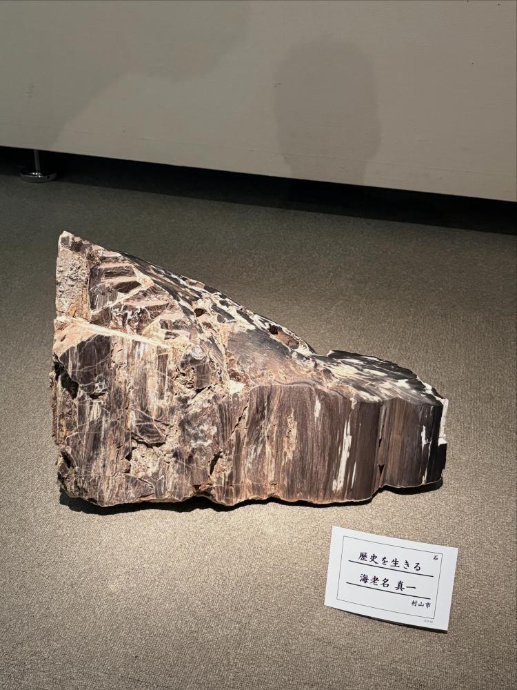 石の浄朝 県美展出品作品 入選タイトル「歴史を生きる」作者海老名 真一木材が長年の風化によって石になっています。完全に石になっている部分と半分木材の風合いが残るところがあります。弊社事務所前にも同じ材料を展示しております。