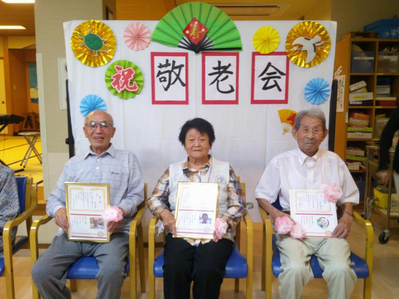 9月17・18日の2日間、あゆみ通所の敬老会を行いました。今年節目の年を迎えられた方々に賀詞をお渡しし、その後はボランティアの方をお呼びして素敵な歌を聴かせていただきました。感動の涙を流される方もおられ、心温まる敬老会となりました。
