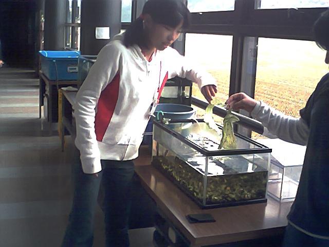 6年生は、毎日カワニナにえさをやっています。すいそうの掃除や、えさやりをしています。なので毎日元気に蛍の幼虫が動いています。