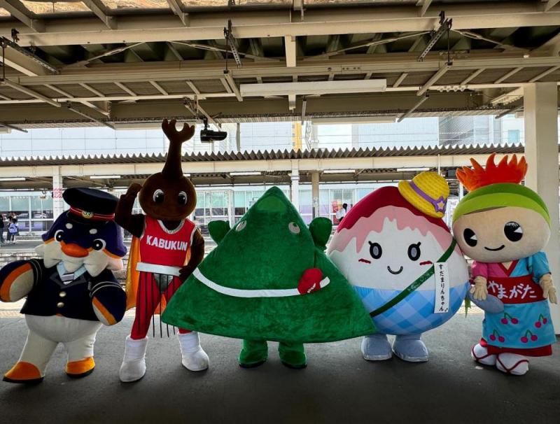 6月15日(土)にJR山形駅で行われた臨時列車「さくらんぼSATONO」の出発式にすだまりんちゃんが参加しました!パンフレットやすだまりんちゃん缶バッジ・お菓子を配布し、山辺町のPRをしてきたまりん(^^)/