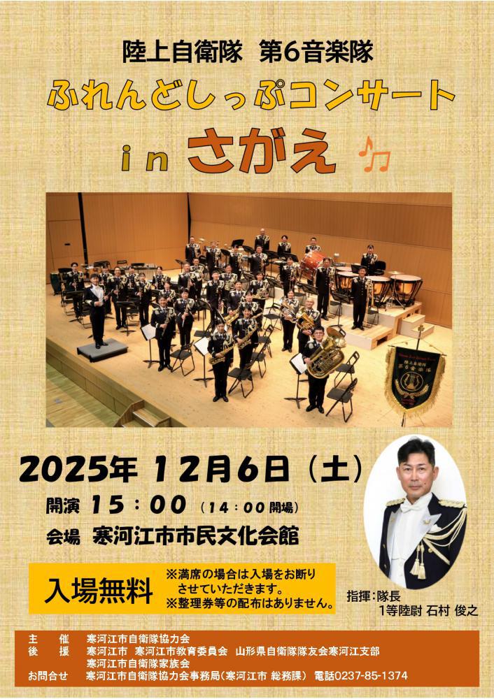 ●【2025/12/6開催】陸上自衛隊 第6音楽隊 ふれんどしっぷコンサート in さがえ